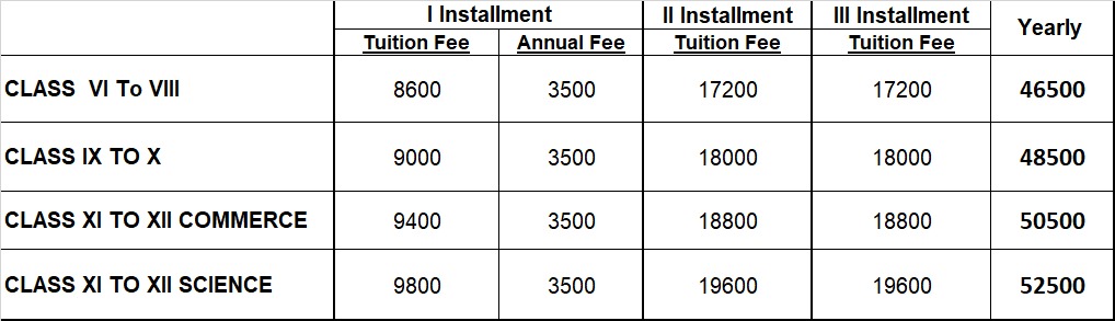 Fee Structure For Academic Session : 2025-2026